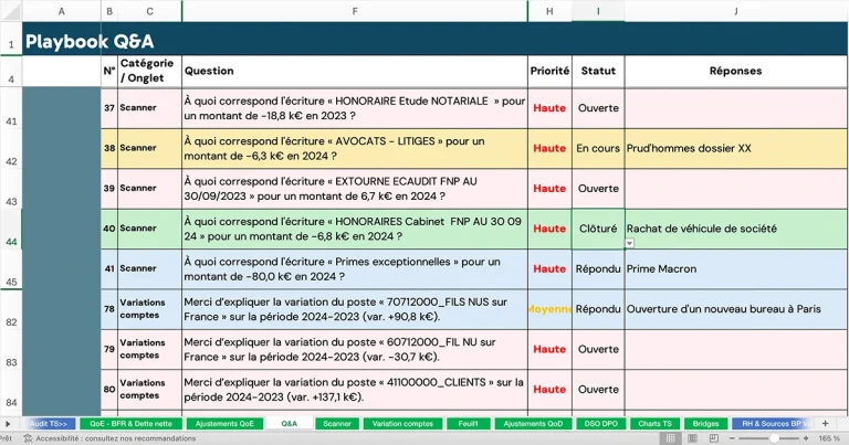 Le module Audit / Transaction Services du logiciel Deal Makr s’enrichit d’un nouvel onglet Q&A automatisé : un outil qui génère instantanément les questions-clés issues de l’analyse du Databook.